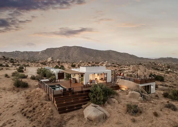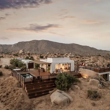 Die 2-Zimmer- Whisper Rock Ranch Joshua Tree Featured In Ad verfügt über eine Terrasse mit Aussicht auf die Berge sowie einen Außenpool.